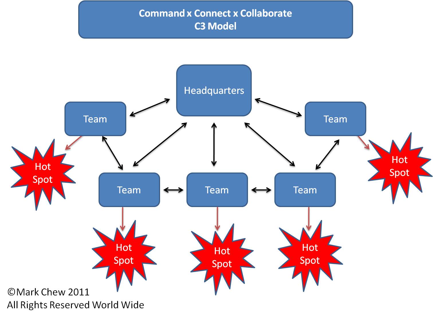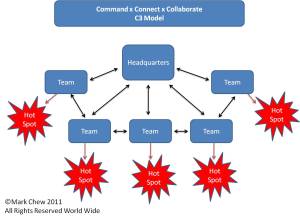 In the above picture, even though there are hot spots sprouting everywhere, the empowered teams are able to handle the respective hot spots (challenges, events, activities). At the same time, even though the command HQ is still overseeing every activity, the teams are able to learn from each other and proceed with what they were tasked to do.